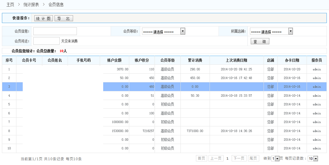 會(huì)員信息統(tǒng)計(jì):
