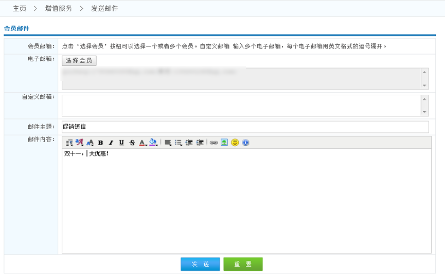 1.電子郵箱:點(diǎn)擊選擇會(huì)員 滿足條件的會(huì)員的郵箱會(huì)自動(dòng)添加到郵箱列表中