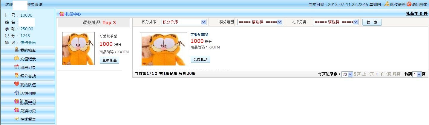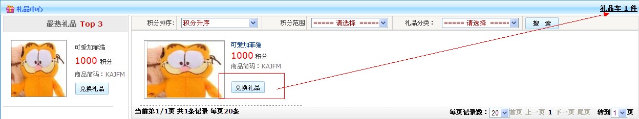 禮品中心 :會(huì)員自助兌換禮品扣除積分