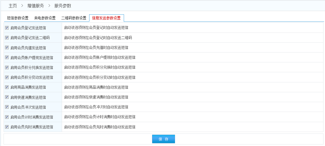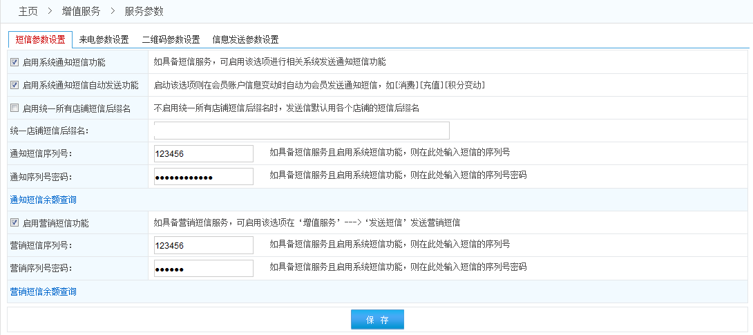 2.通知短信是會員在本系統(tǒng)中進行消費充值等操作時給會員發(fā)的提醒短信;營銷短信是為了促銷等目的專門為一個或多個會員發(fā)送的(營銷短信有且只能在發(fā)送短信的頁面發(fā)送)